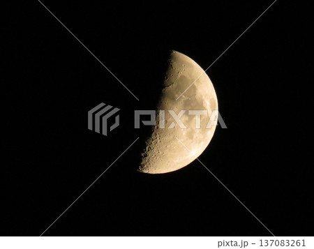 Beautiful Half Moon on dark Night sky in growing phase. The first quarter