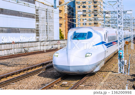 日本の横浜都市景観 インバウンド…新横浜駅の新幹線などを望む。新時代へ…