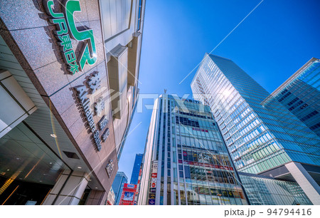 日本の東京都市景観 緊急事態宣言下。マスク姿の人たちで賑わう丸の内の街角や新幹線など望む=1月16日