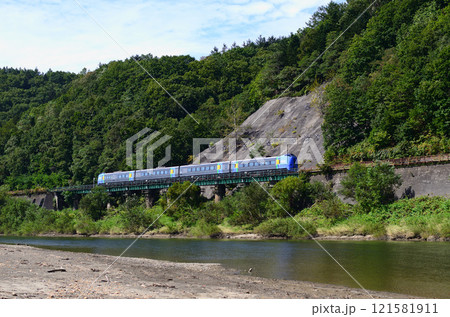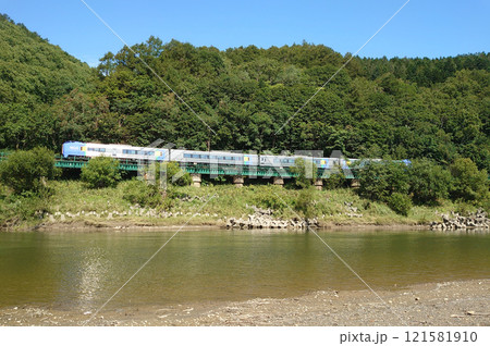 天塩川沿いの鉄橋を行く特急「宗谷」