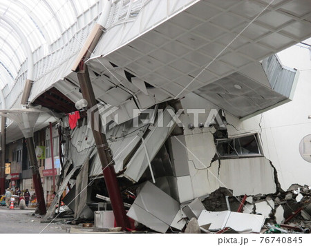 平成28年熊本地震で倒壊した熊本市東区の健軍商店街にあるスーパー