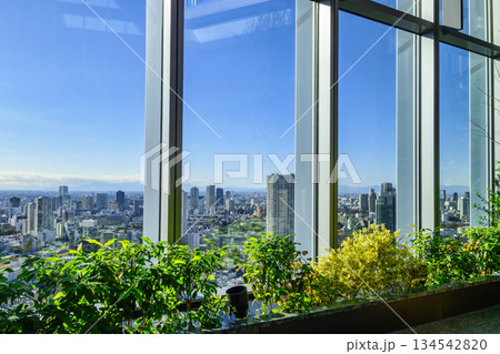東京都港区 高輪ゲートウェイシティ ニュウマン高輪 28階 翠の庭から六本木ヒルズから都庁方面