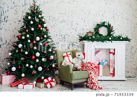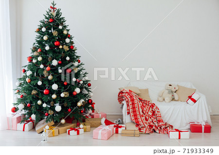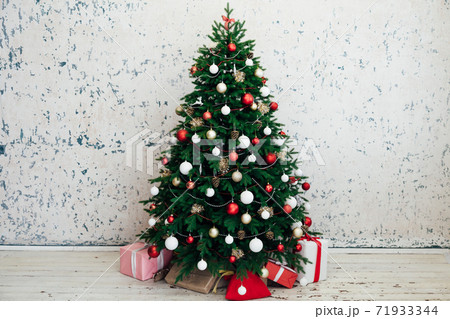 Christmas tree pine with gifts interior decor new year 2021 2022