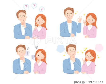 若い夫婦の表情バリエーションイラスト素材セット