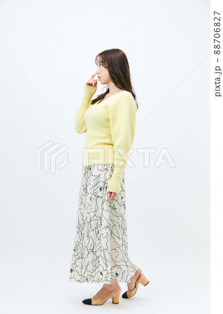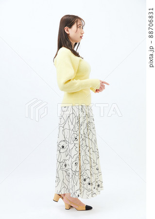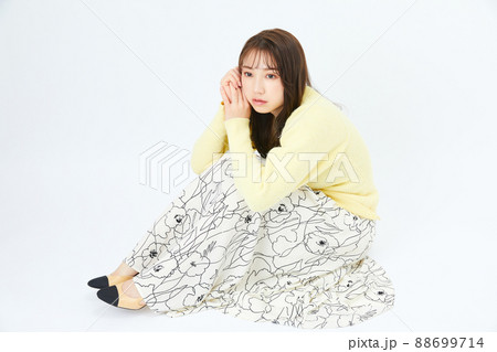 ニットを着た若い女性 ガーリーファッション 前髪 うざバング