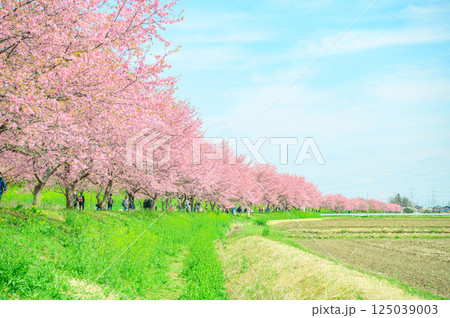 春の西古瀬川、満開の河津桜〈愛知県豊川市〉