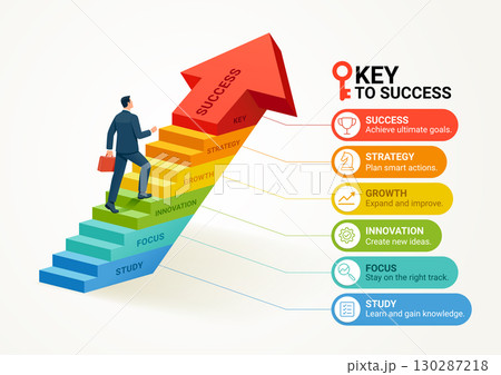 Colorful 3D infographic illustration of the Key to Success concept.