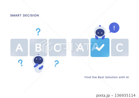 選択肢からベストな答えを選ぶプロセス。AIの比較検討と意思決定のベクターイラスト素材。