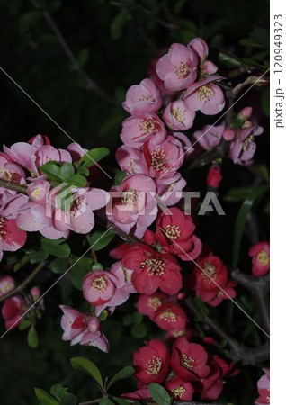 3月中旬頃からバラ科ボケ属落葉低木ボケの花 (東洋錦)2