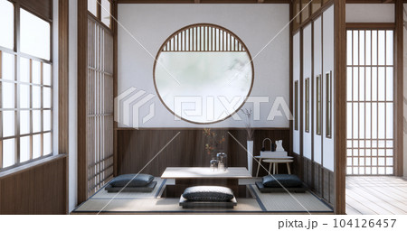 Bedroom japanese minimal style.,Modern white wall and wooden floor, room minimalist.