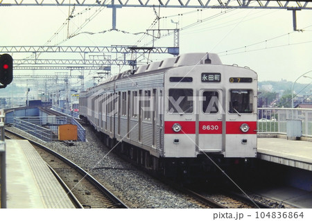複線時代の二子玉川園駅3番線に進入する8500系8630他8両・永田町行、1980年5月5日