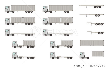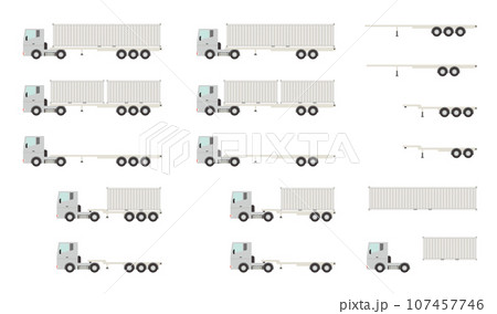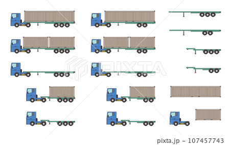 海上コンテナを輸送するトラック・セミトレーラーのベクターイラストセット