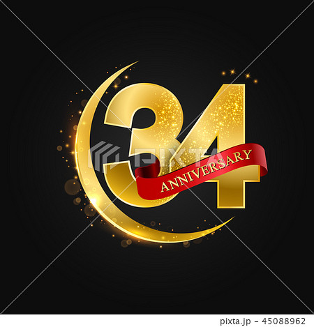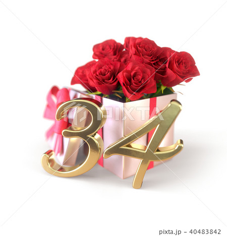 birthday concept with red roses in gift isolated on white background. thirty-fourth. 34th. 3D render