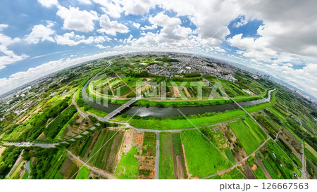 空撮「埼玉県」全天球カメラで見沼田んぼを撮影