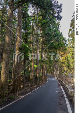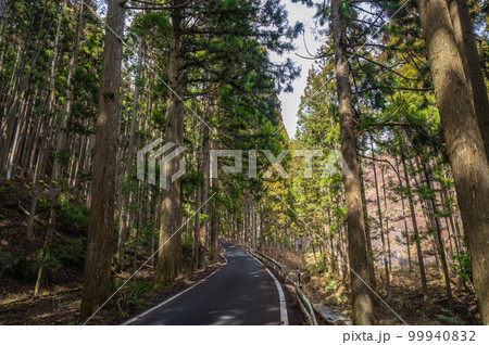 針葉樹林の間を縫う道 鞍馬街道 京都市鞍馬