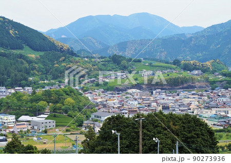 川根町家山の茶畑と家山の町並み【掛川川根線からの眺望】