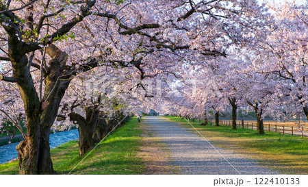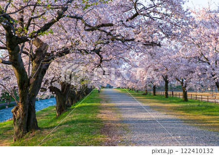 舟川べりの桜並木の絶景の桜 ( 富山県 朝日町 )