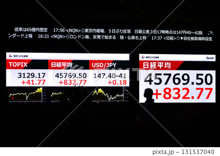 日本の東京都市景観147.40-41米ドル/円(最高値更新・4万5769円50銭。株価/終値)=3日