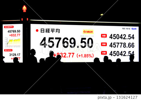 日本の東京都市景観最高値更新・4万5769円50銭。株価/終値=10月3日、日本橋兜町