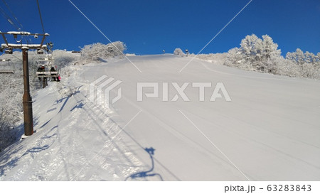 快晴のスキー場 頂上へ続くリフトと白いゲレンデ