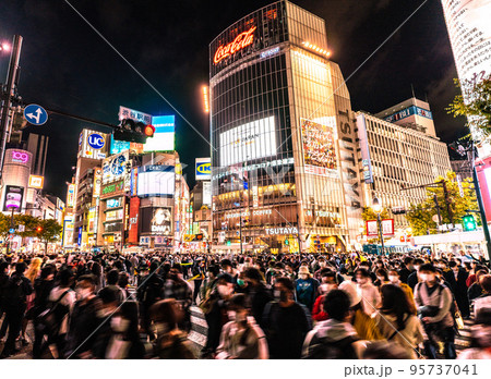 日本の東京都市景観 ハロウィーン前夜、“時短全面解除後”初の週末…渋谷は脅威の人流…=10月30日