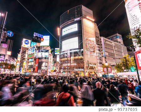 日本の東京都市景観 ハロ本番。3年ぶり自粛要請なしの渋谷ハロウィンは大混雑…=31日、23時