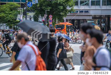 日本の東京都市景観 4度目の宣言初日…変異株感染爆発…五輪“狂行”…人流も大爆発…=7月12日、渋谷