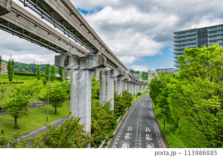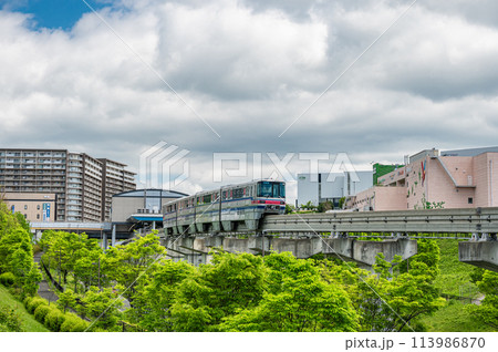 大阪モノレール彩都線 彩都西駅を出発する電車
