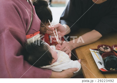 お食い初め 三世代 (赤ちゃん 生後100日 祖父 祖母 ママ 家族 祝い膳 箸初め 乳児 シニア)