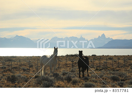 アルゼンチンのパタゴニアで出会った白馬と黒馬