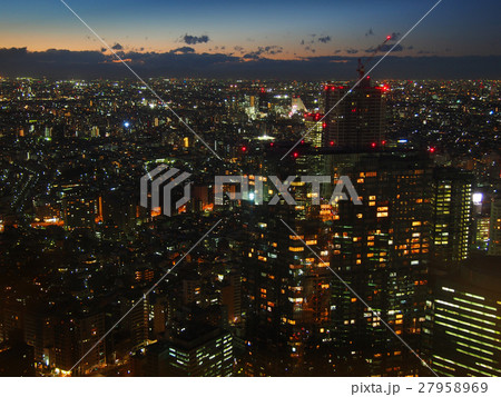 都心のビル街(都庁展望台)~夕暮れと夜の間~
