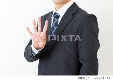 4本指を立てるスーツを着たミドル男性ビジネスマン