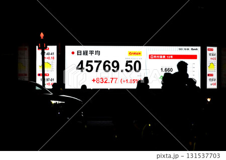 日本の東京都市景観最高値更新・4万5769円50銭。株価/終値=10月3日、日本橋兜町