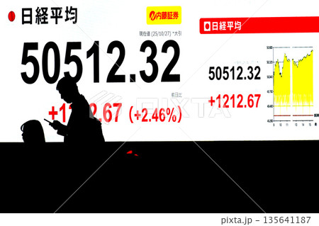 日本の東京都市景観初5万円突破・日経平均株価5万0512円32銭・株価/終値=27日、日本橋兜町