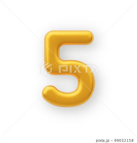 3D Gold number 5 on a white background .