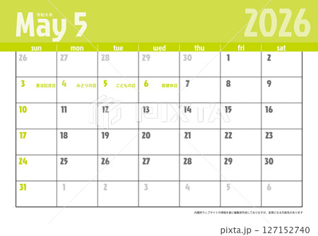 日曜始まり卓上カレンダー令和8年 2026年5月 ビジネス向け シンプルカレンダー素材