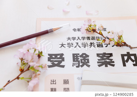大学入試共通テストの受験案内と桜の生花 大学入試イメージ