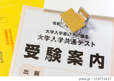 大学入試イメージ 大学入試共通テストの出願書類と学校机