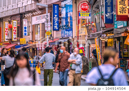 日本の東京都市景観 5類移行後の初の金曜日。飲み客や仕事帰りの人たちで賑わう飲み屋街…=5月12日