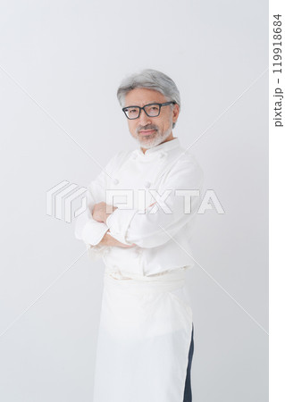スマホを操作する作業着姿のミドル男性ビジネスマン