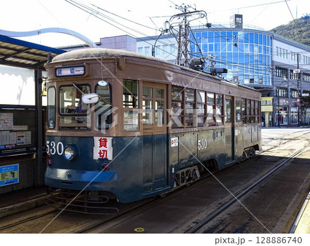 【ロゴ運転手乗客サインぼかし済】函館市電530号十字街電停停車中