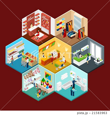 Shopping Mall Hexagonal Pattern Isometric
