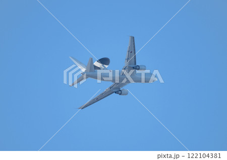 旋回する航空自衛隊E-767早期警戒管制機