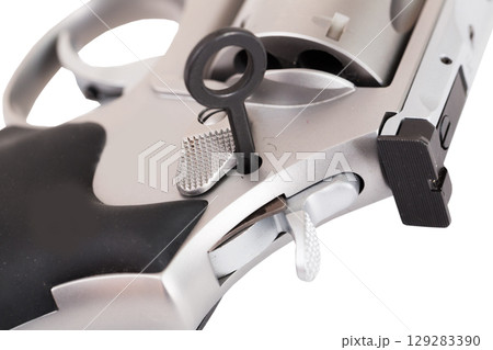 Close-up of revolver with safety lock key inserted