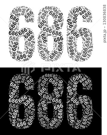 Typography illustration of 686 made from repeating numbers in black and white
