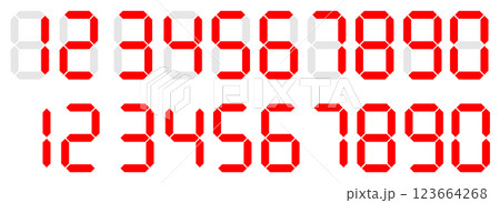 赤の7セグメントで表示した数字 デジタル文字素材集