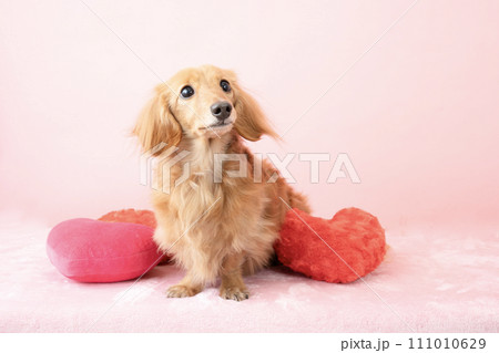 複数のハートとミニチュアダックス