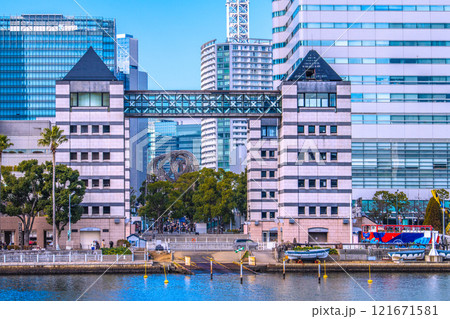 日本の横浜都市景観1月2日。みなとみらい。ドックヤードガーデン前の円形広場方向を望む=令和7年