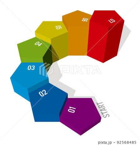 虹色五角形のステップ図インフォグラフィック ベクターイラストレーション