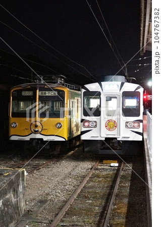 上信電鉄の風景 700系703F編成と500型501F編成(夜の下仁田駅)